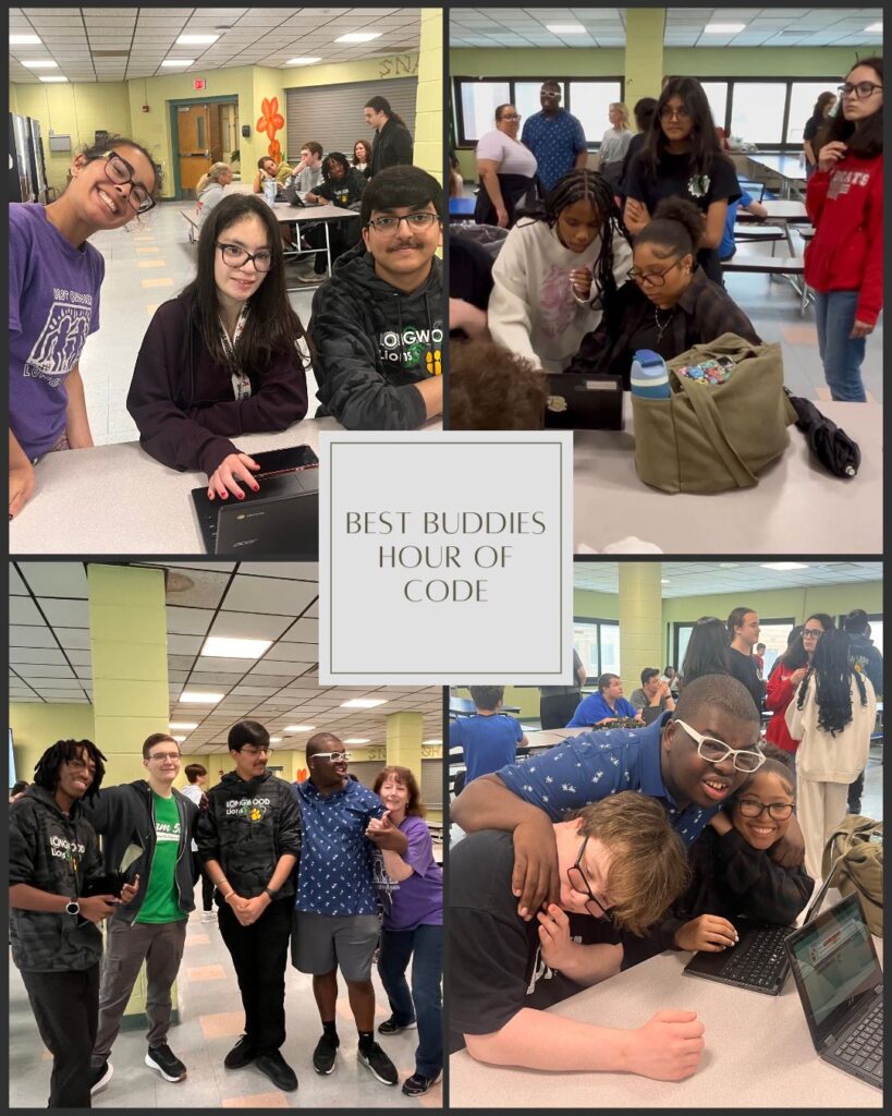 We teamed up with our best buddies organization to offer coding instruction through the code.org Hour of Code Program to our students who may not previously have experienced Coding. This runs in conjunction with our Best Buddies Hack-a-thon where we allow our best buddies members to compete in a coding competition run by our team.