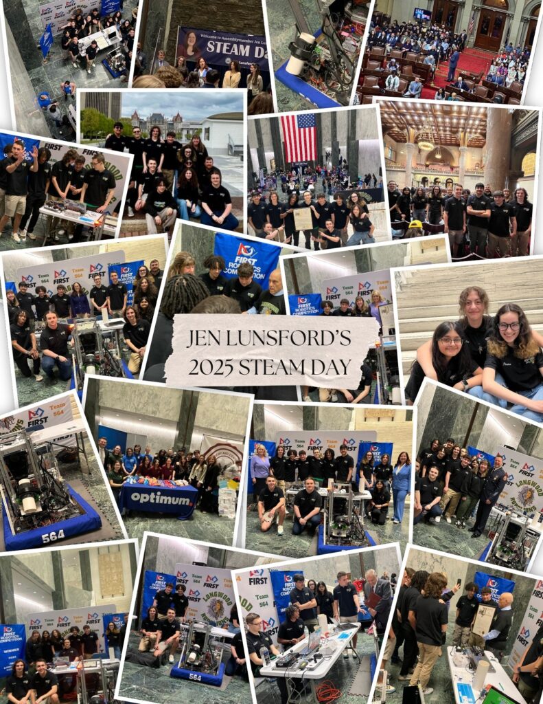 We visited the New York State Capital at the invitation of Jen Lunsford Assembly member from the Rochester Region. We were there promoting bills in both the state assembly and state senate to allow for further funding for Tier 1 Schools with Robotics Programs. We were introduced on the assembly floor, received a proclamation, and met with various government officials to speak about the importance of Robotics in High School Education.