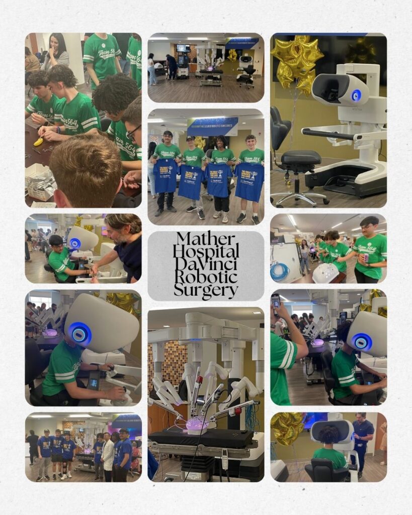 Our team met with the Director of the Robotic Surgery Center of Excellence at Mather Hospital, Arif Ahmad. Our Students operated the robots arms as a surgeon would in a competition testing their skill. We also tried suturing and a simulated traditional laparoscopic procedure with a handheld camera. Our team took First Place in the competition against other teams using the da Vinci surgical robot.